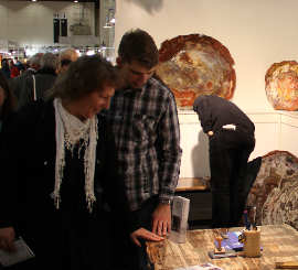 Thousands of visitors of the largest mineral show in Northern Europe, the "mineral-hamburg", were amazed. In the foyer of the exhibition halls, we placed a large dinosaur which proved a crowd puller. Press and television had their headlines with this unique find of the century, which has been ready prepared in this year's spring. With more than 12 meters length and three meters height, this sauropod stood with more than 90% degree of conservation in particular for the activities of our preparators and the team that successfully carries out our excavations. The presentation of the REDGALLERY was themed and focused on fossil woods, offered to the enthusiastic audience as design highlights for its interior. With its magnificent play of colours and the artistic-looking structures are the fossilized wood slices even suitable as a picture on the wall: a whole new way to show one's affinity to nature. With the well-attended booth it was possible to represent the gallery in its orientation very well.